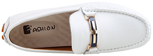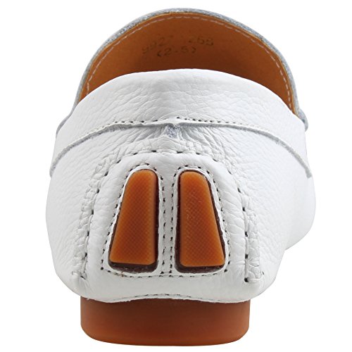 SKOEX Men’s Leather Loafers Slip On Boat Driving Shoes US size 10 White