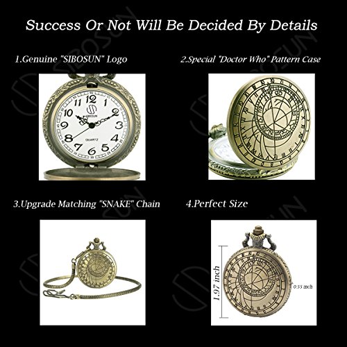 Smart.Deal Antique Full Hunter Doctor Who Bronze Case Quartz White Dial Chain Men Pocket Watch Dr. Who