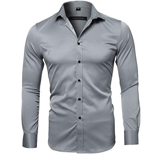THWEI Mens Dress Shirts Long Sleeve Slim Fit Bamboo Fiber Casual Button Down Shirts Grey L