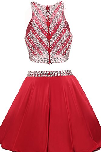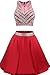TrendProm Women’s Prom Dresses Two Pieces Satin Beaded Evening Dresses Size 4 US Red