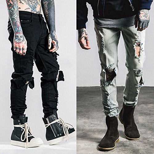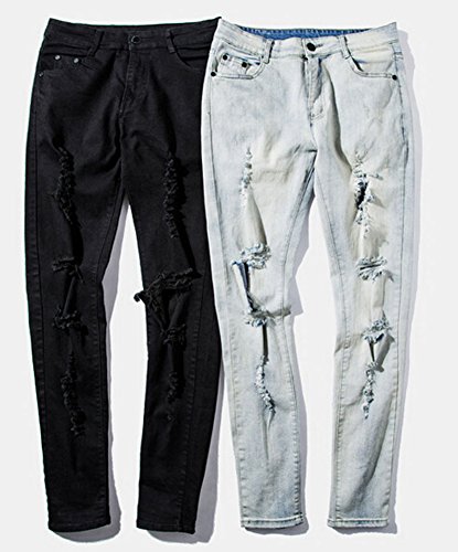 US Stock Destroyed Ripped Denim Pants Men’s Slim Skinny Biker Straight Jeans (32, Light Blue)