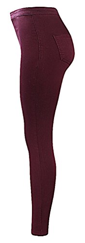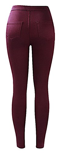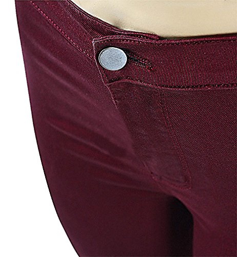 US&R Women’s Skinny Burgundy Jeans Comfortable Casual Fitted Mid Waisted, Burgundy 8 ,Manufacturer(XL)