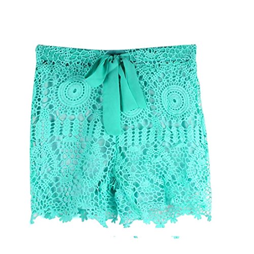 VESNIBA Womens Summer Elastic Waist Lace Crochet Beach Mini Shorts Hot Pants (S, Green)