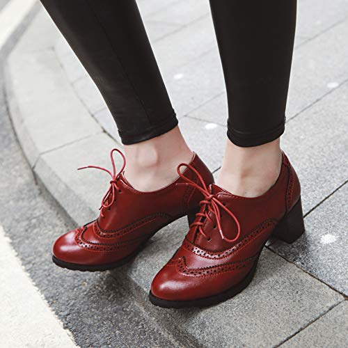 Vimisaoi Women’s Vintage Oxfords Brogues Wingtip Chunky Block Heel Shoes, Lace-up Perforated Stacked Pumps Dress Saddle Shoes Gift