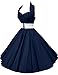 VKStar Women’s Chic Ruched Bust Halter 1950s Hepburn Vintage Swing Rockabilly Tea Dress with Removable Belt Navy blue M