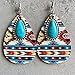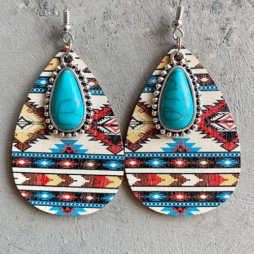 Western Cowgirl Cowboy Earrings Set Boho Vintage Handmade Bohemian Turquoise Cow Print Leather Wood Teardrop Dangle Earrings