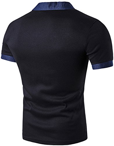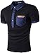 Whatlees Mens Short Sleeve Button Down Contrast Collar Breathable Ribbed Knit Golf Office Polo Shirt With Front Leather Pocket B481-Black-L