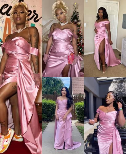 - Dress Highlights:A full of design prom dress 2022 with Off Shoulder,V Neck,Mermaid,High Side Slit,Pleated Satin,Sweep Train,Built in Bra,Lace Up Back.It's the smartest choice
