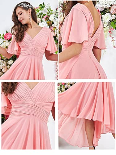 - ❀FEATURES: High low bridesmaid dress features a wrap style v neck and flutter sleeves. The high low design ensures that your best friends look just as classy as you do on your big day. The flutter sleeves offer an elegant touch to complete this look. A perfect fit for bridesmaids, wedding guests.