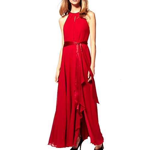 Women Halter Neck Sleeveless Chiffon Maxi Evening Party Dresses (Large, Blue)