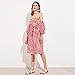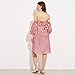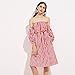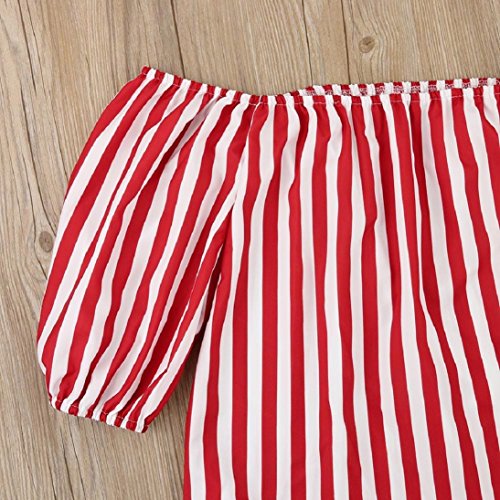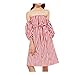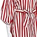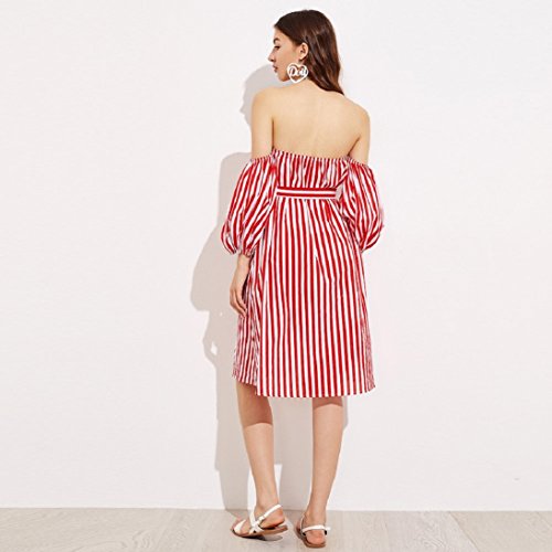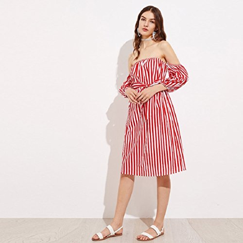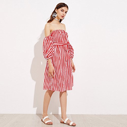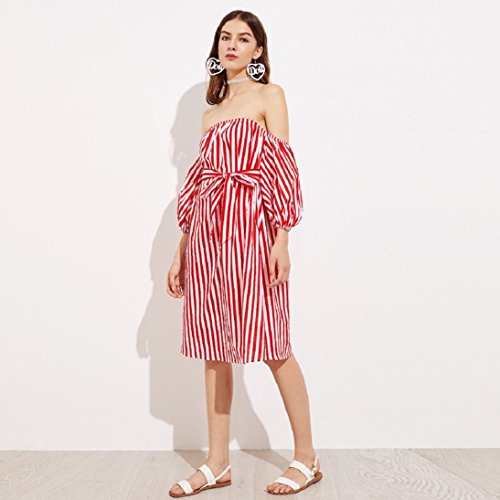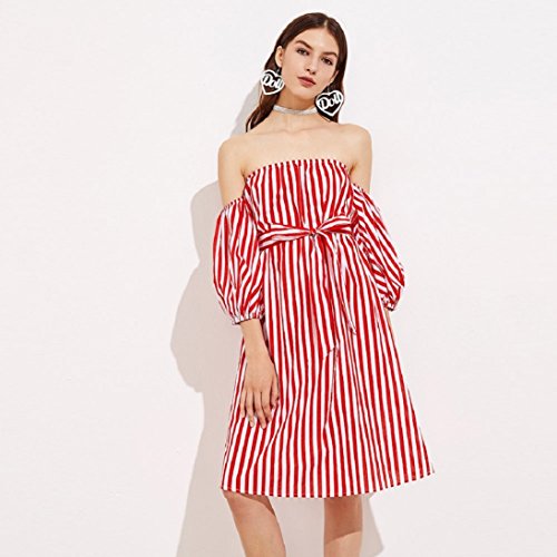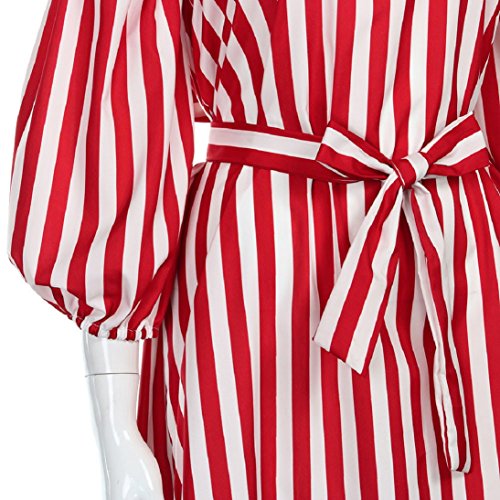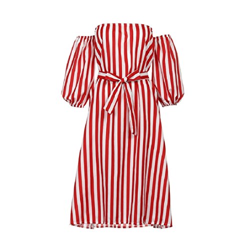 Womens 3/4 Sleeve Sexy Off Shoulder Ladies Casual Red Striped Dress With Belt (L, Red)