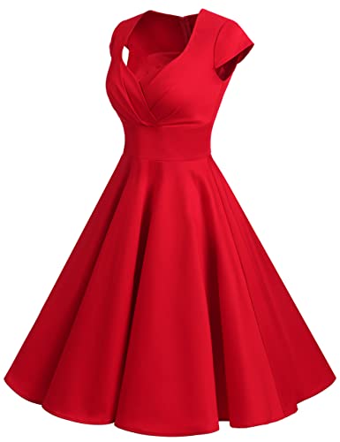Women’s 50s Retro Cocktail Party Dress Plus Size 60s Short Vintage Wedding Pinup Rockabilly Swing Dress Red 3XL