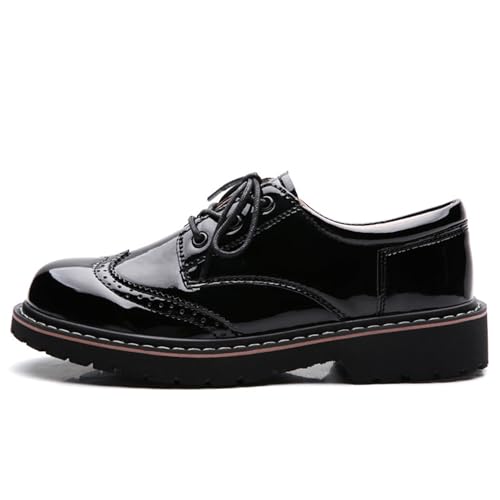 Women’s Lace Up Oxfords Shoes Patent Leather Round Toe Comfy Low Heel Classic Platform Oxfords Cozy Lace up Brogues Shoe Comfortable Black Size 9