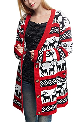 Womens Oversized Christmas Reindeer Cardigan (X-Large, Red Reindeer Cardigan)