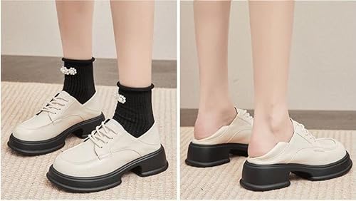 Women’s Vintage Oxford Shoes Lace Up Casual Loafers Round Toe Low Heel Platform Oxford Shoes Comfortable Dress Shoes Casual Mules. (Color : White, Size : 8.5)