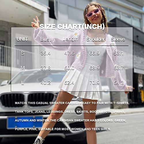 - MATCH: This casual sweater cardigan easy to pair with T-shirts, tank tops, jeans, leggings, dress, skirts, boots etc in Spring, Autumn and Winter.The cardigan sweater has 3 colors: green, purple, pink, suitable for most women and teen girls.
