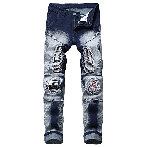 XARAZA Men’s Distressed Ripped Biker Moto Denim Pants Slim Fit Zipper Jeans (W27=Tag28(Asian Size), Black)