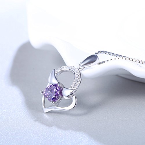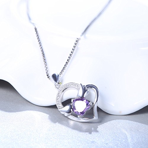 You Are The Angel In My Heart- Sterling Silver Pendant Necklace with SWAROVSKI Crystal, Purple, 18″