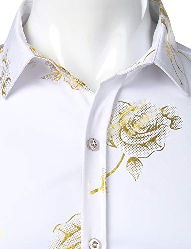 ZEROYAA Mens Hipster 3D Golden Rose Floral Printed Slim Fit Long Sleeve Button Down Dress Shirts ZZCL22 White Large